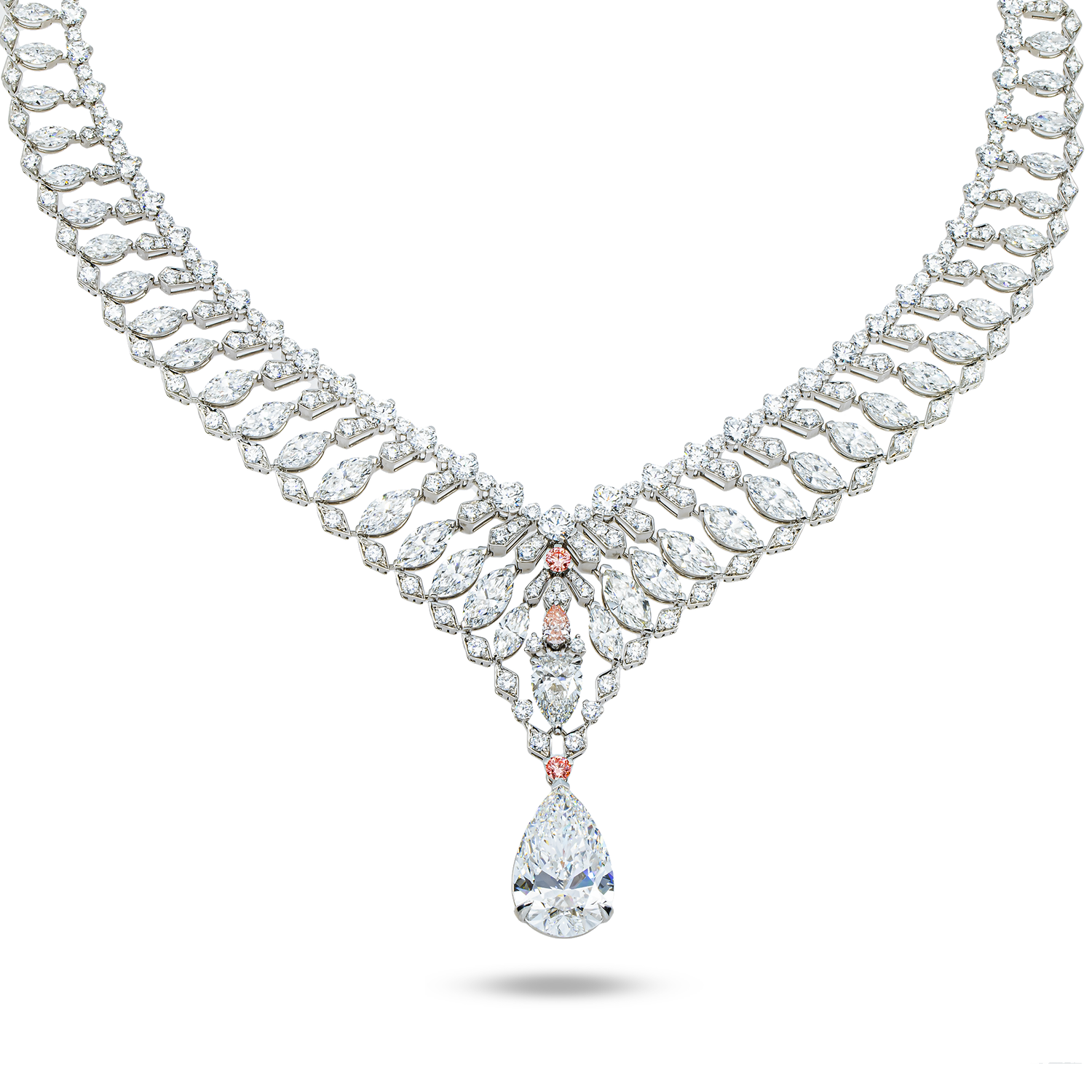 • 18K White Gold Graduated Cushion Cut Fancy Yellow Diamond Chain 74.25Ct Necklace